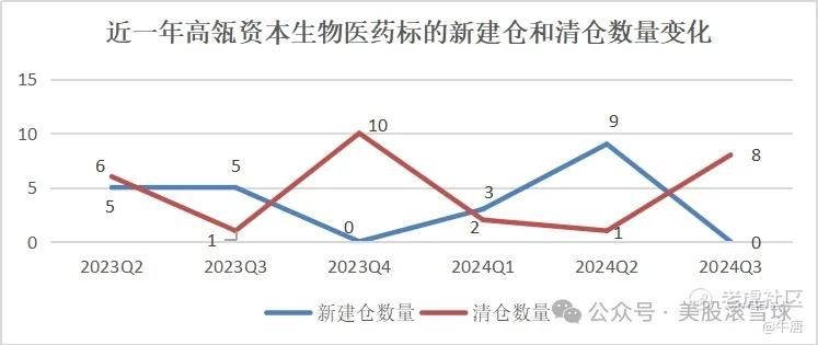 2024年三季度,高瓴资本未建仓一家生物医药公司,而上季度新建仓数量为9家。