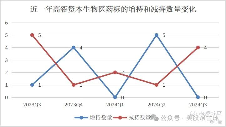 BBIO:高瓴资本在今年一季度和二季度连续增持,而在三季度则减持26.37%,可能是为了规避治疗ATTR-CM的药物acoramidis在四季度的上市审批风险。公司在2023年12月宣布递交了acoramidis上市申请,股价也是一路上涨,高瓴资本也是借机逢高减持了50%。此前。公司在去年7月发布了治疗ATTR-CM的三期数据,股价暴涨,高瓴资本也在当时减持了50%。