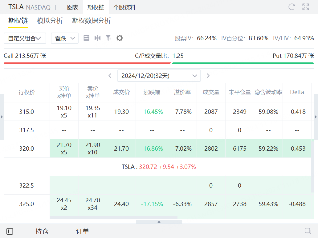 看多特斯拉的投资者可以卖出到期日为12月20日,行权价为320的看跌期权,获得权利金2170美元。