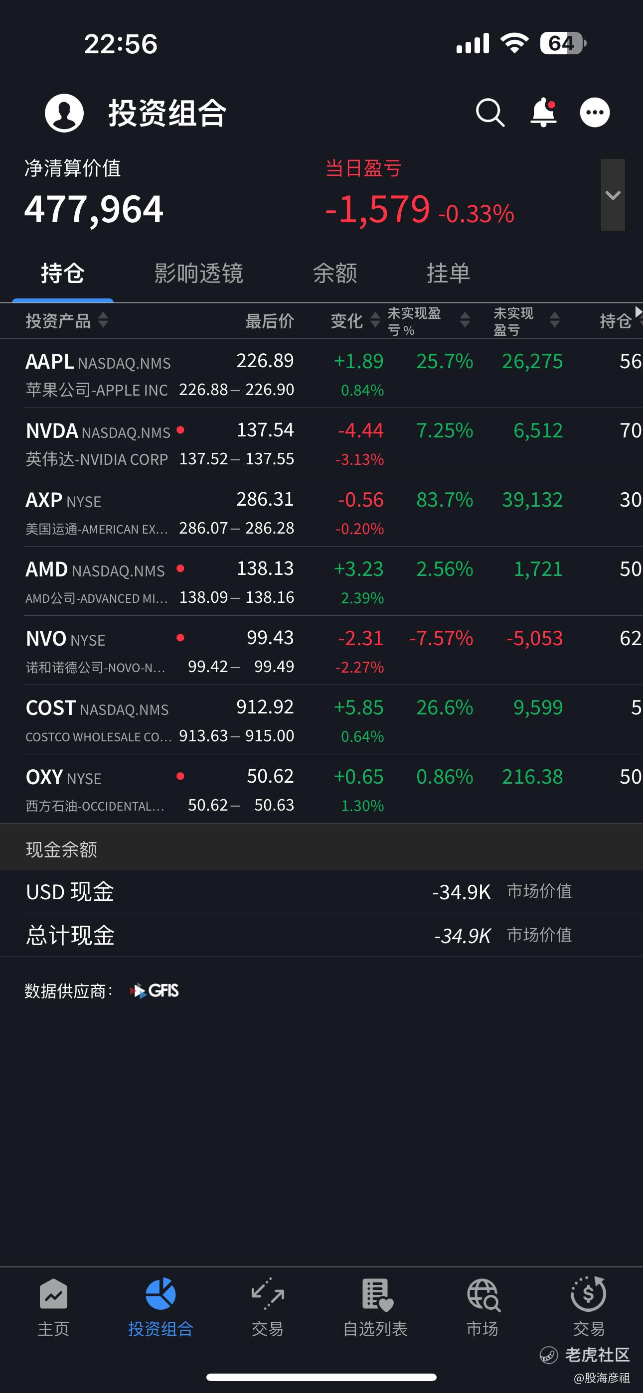 今天白天,美股夜盘阶段买入100股诺瓦和500股西方石油。