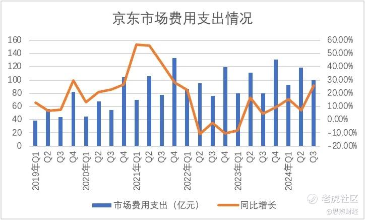 2024年Q3京东市场费用支出高达100亿元,创了历史新高,其用意乃是十分明显的。