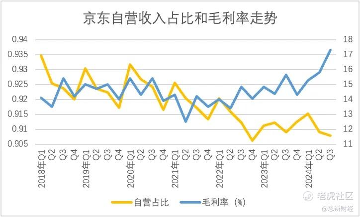 以上框架基本可以在现实中得到验证,争议并不大,但在2024年Q2之后,京东执拗于坚持低价战略,且此时平台毛利率又得到回转,企业呈现“反直觉性”,基于此我们又给框架添加了“补丁”: