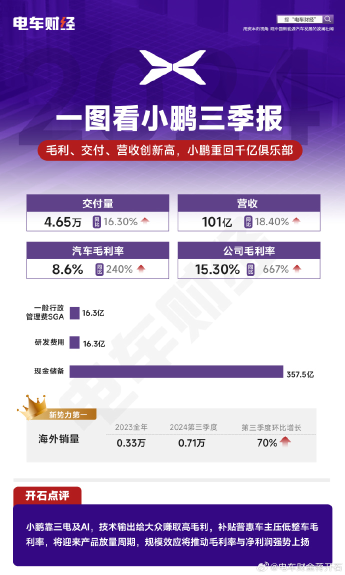 靠三电、电子架构及AI技术输出赚高毛利来普惠车主的小鹏汽车,从今年三季报开始将大鹏展翅 $小鹏汽车(XPEV)$ $小鹏汽车-W(09868)$