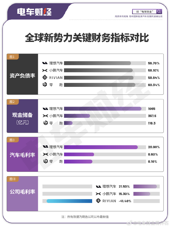 小鹏汽车是全球新势力中资产负债率最低水平,为58.1%(与理想汽车齐平),没有太大还本付息的压力 ,见图2中的第1个图