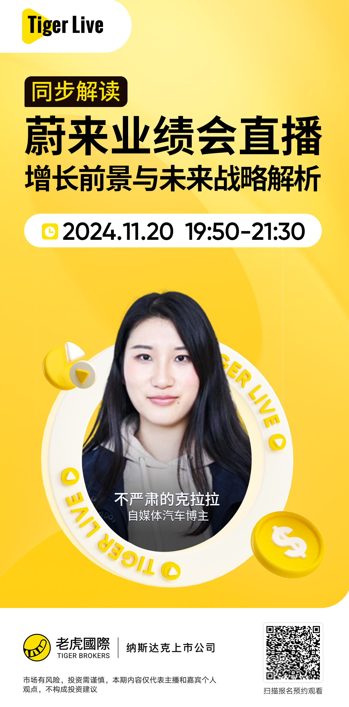 今晚八点,知名自媒体汽车博主“不严肃的克拉拉”,和您一起同步观看蔚来业绩会,实时解读蔚来的投资策略和发展前景! $蔚来(NIO)$ $蔚来-SW(09866)$