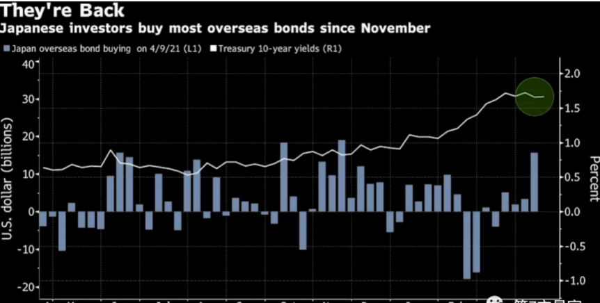 另外,来自日本的卖盘已经从卖出转为买入,从日本财务省的最新数据上看,截至4月的第一周,日本投资者购入了17,144亿日元的美债,-