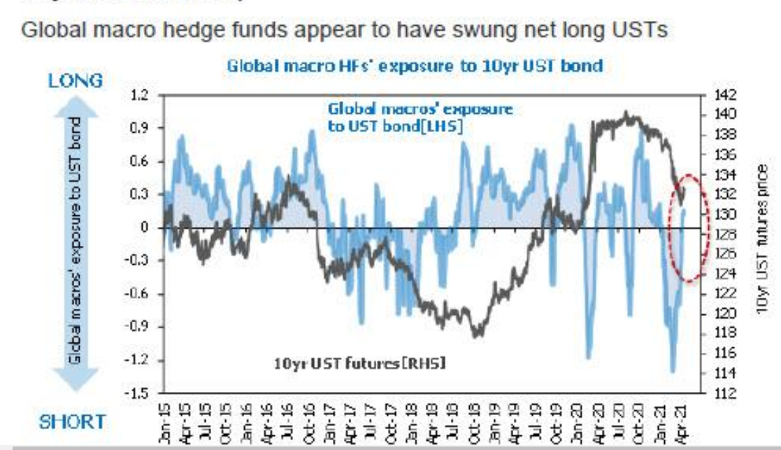 比如全球大型对冲基金对10年美债的敞口由负转正