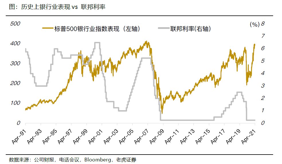 从长期来看,加息周期前后,银行股通常更有可能创造超额回报。而此刻,美国正处在下一个加息周期预期(至少要等到2022年)计入的上半场。
