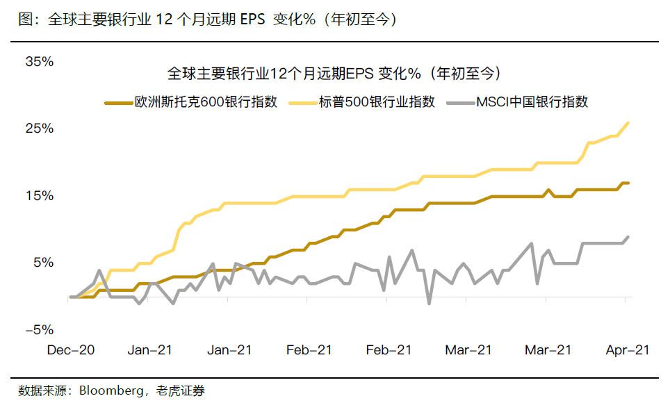 纵览全球,年初以来,欧美银行业盈利复苏弹性整体大于中资银行,美国银行业又优于欧洲,这里隐含的预期在于,海外更加宽松的货币政策下,美国和欧洲可能会经历大幅复苏。