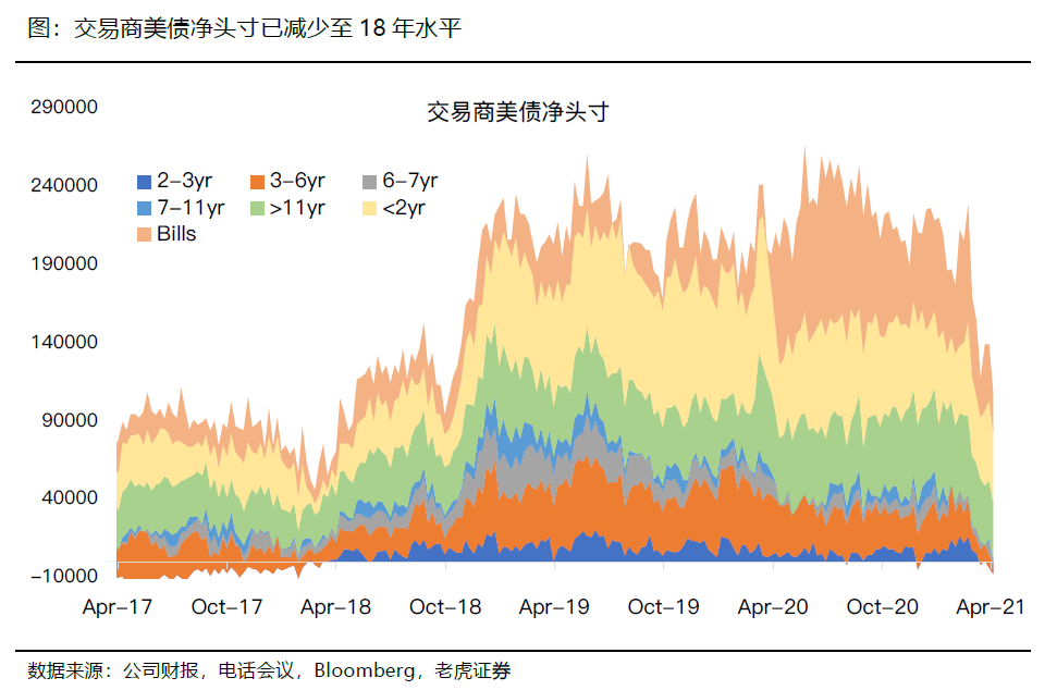 除此之外,3月底,SLR延期失败后,银行补充杠杆率的考核需要纳入美债,美国金融交易商开始卖出美债头寸,给美债收益率带来了上行压力,也在一定程度上给银行股带来上行动能。