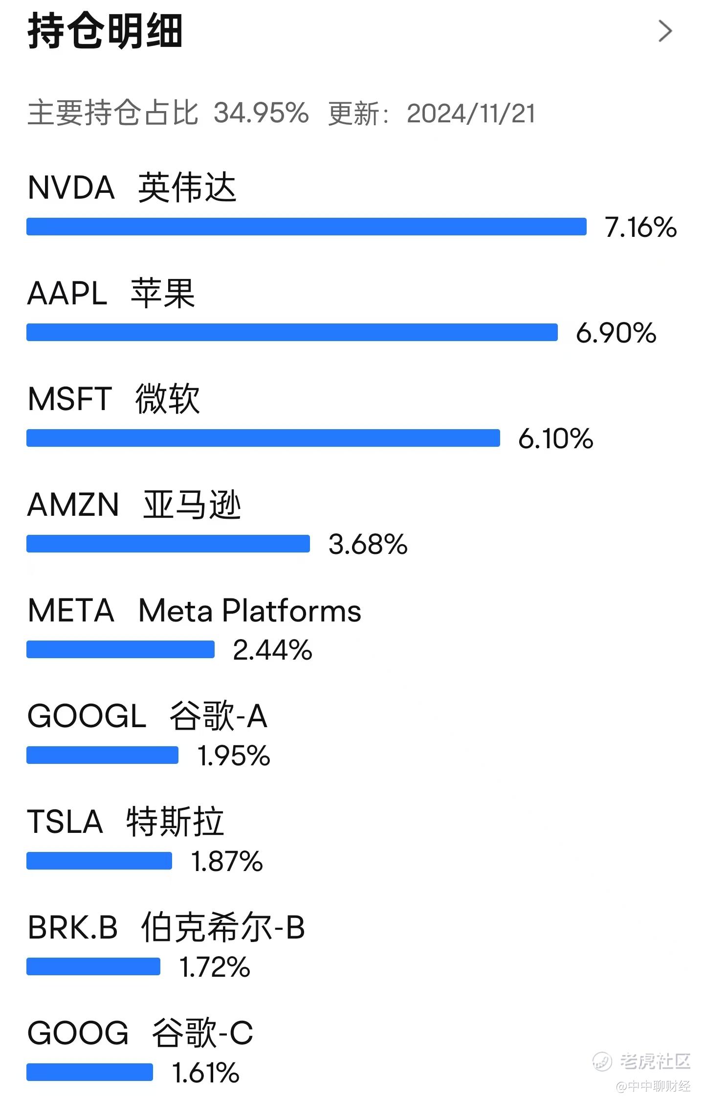 2、从持仓来看,英伟达、苹果、微软等优质股票占比较高,为该基金的上行提供了有利条件。