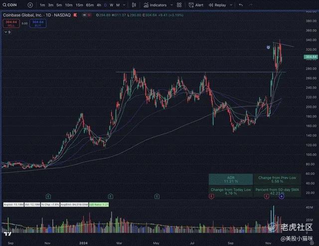 Coinbase (COIN) 也在我的观察名单中。其图表和相关说明已在比特币部分提供,但同样需要时间调整。