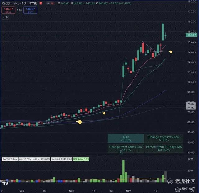 此外,本周二,RDDT给了尚未参与的投资者另一个买入点(图表右上角)。最初的买入点是图表中更低的两个标注点。