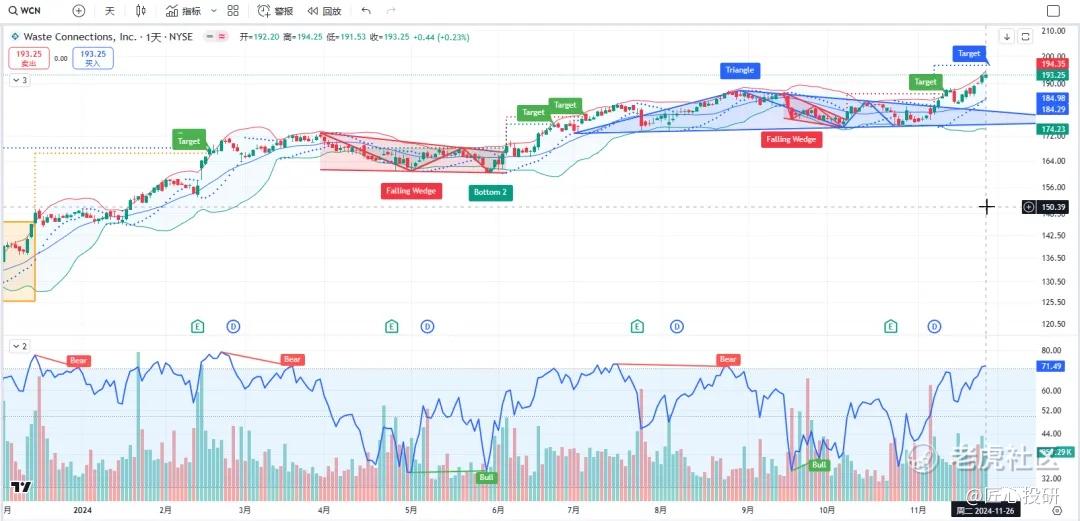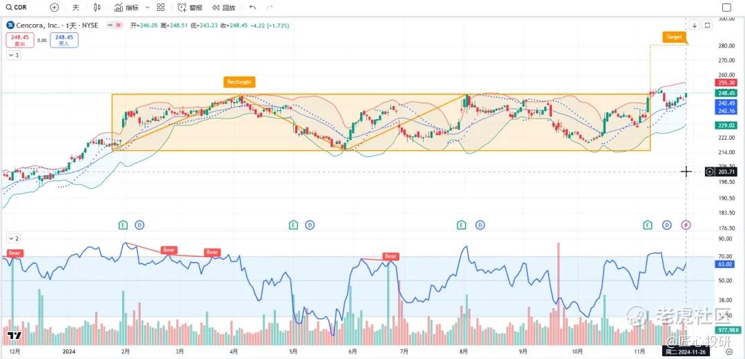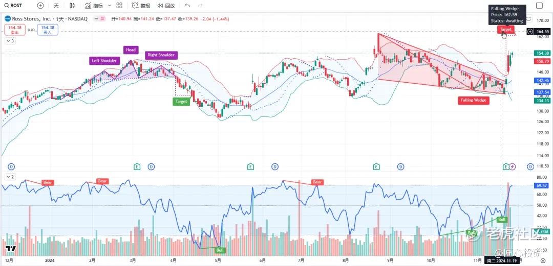 热门美股K线技术形态六11月27日