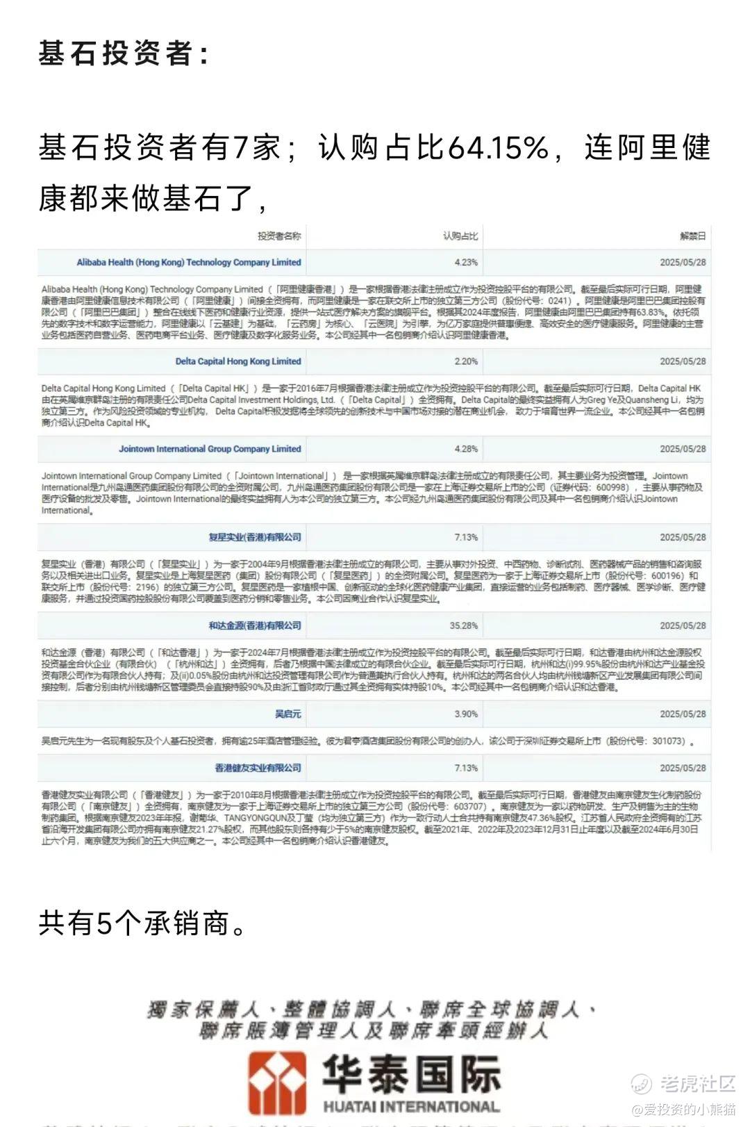 九源基因(02566.HK)国配货是很分散,前25大承配人上市后所持股份数目占上市后已发行股份总数18.42%。九源基因(02566.HK)这个票稳价人是华泰金融控股(香港)有限公司,绿鞋失效。