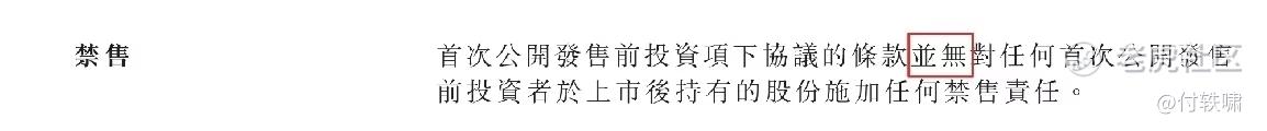 第2处:首次公开发售前投资项下协议的条款并无对任何首次公开售前投资者于上市后持有的股份施加任何禁售责任。