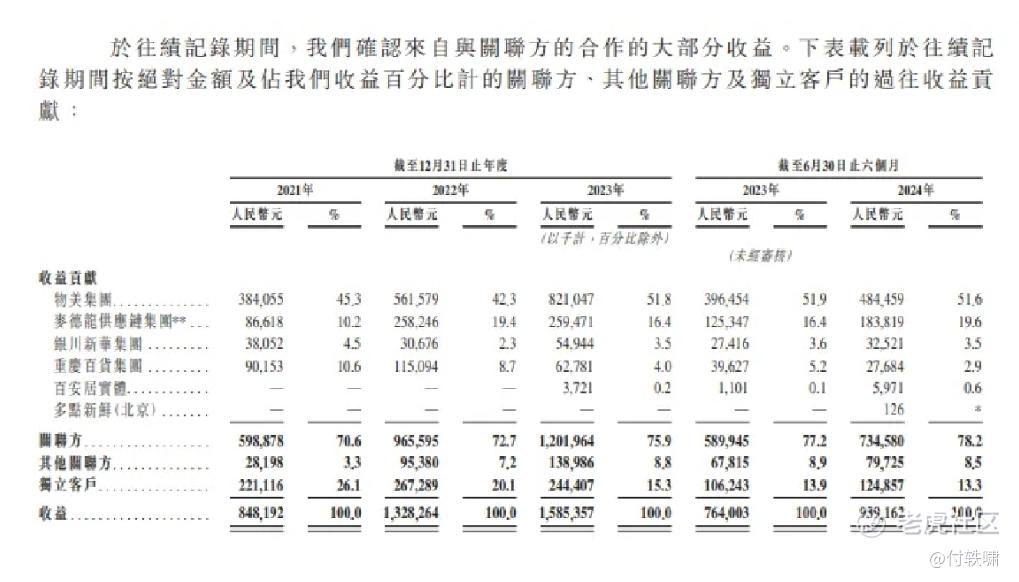 据招股书,作为物美系的一部分,以物美集团、麦德龙中国、重庆百货集团、银川新华集团和百安居为主的“最大客户”贡献了大部分收入,第三方独立客户的贡献并不大。