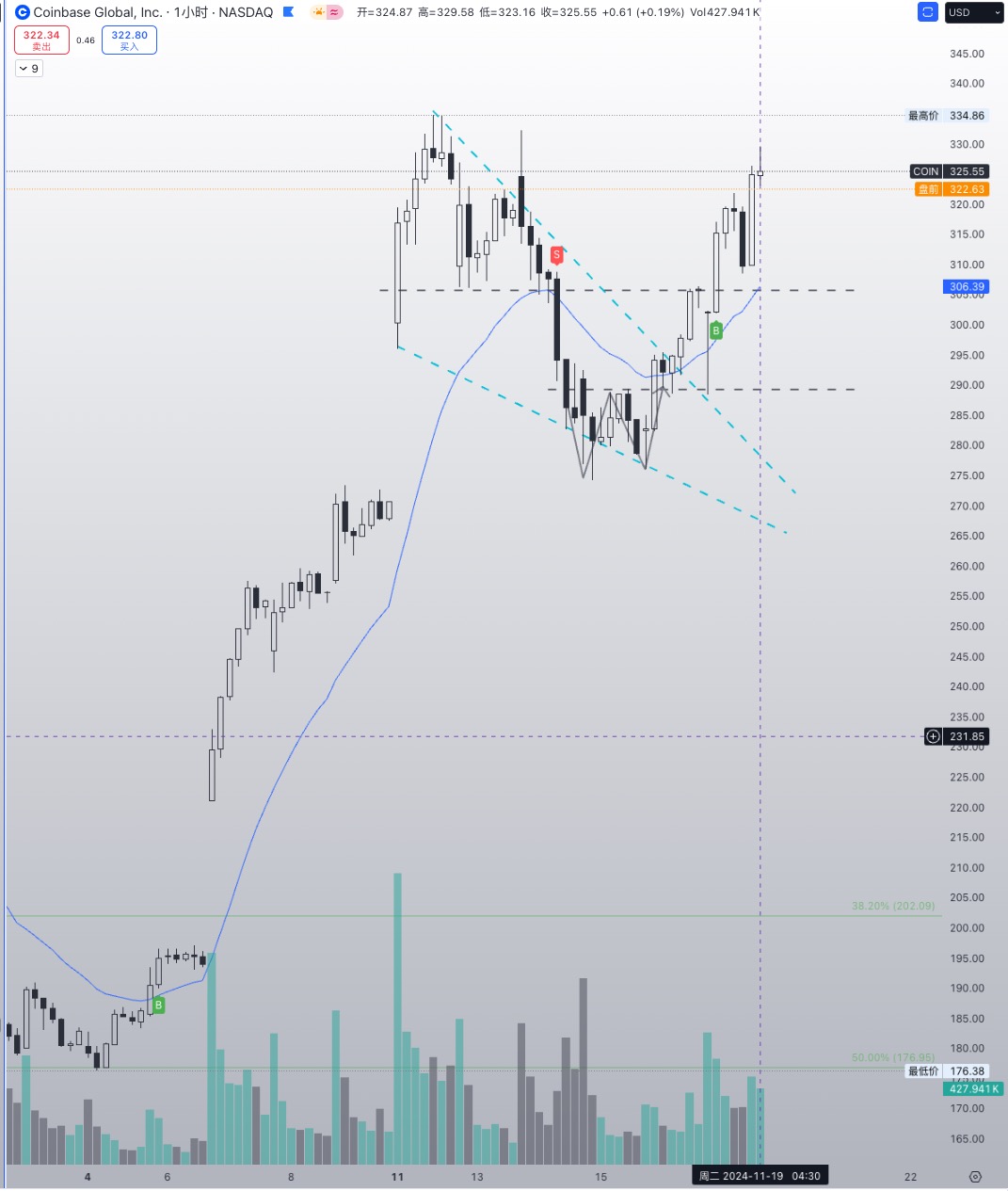 因为我本身是比特币的长期持有者,我在2023年6月末发现了美股突破大形态的转变,并在2023年10月17日通过分析方法提前判断牛市可能会开启。因此,我一直做币本位操作,采用动态对冲,确保我能够承受的心理波动范围内,持有核心资产穿越牛熊。同时,我也会在比特币技术和币股出现共振时,做币股的短期期权,以获取共振主升浪的加速度获益。 $MicroStrategy(MSTR)$ $Coinbase Global, Inc.(COIN)$ $GraniteShares 2x Long COIN Daily ETF(CONL)$