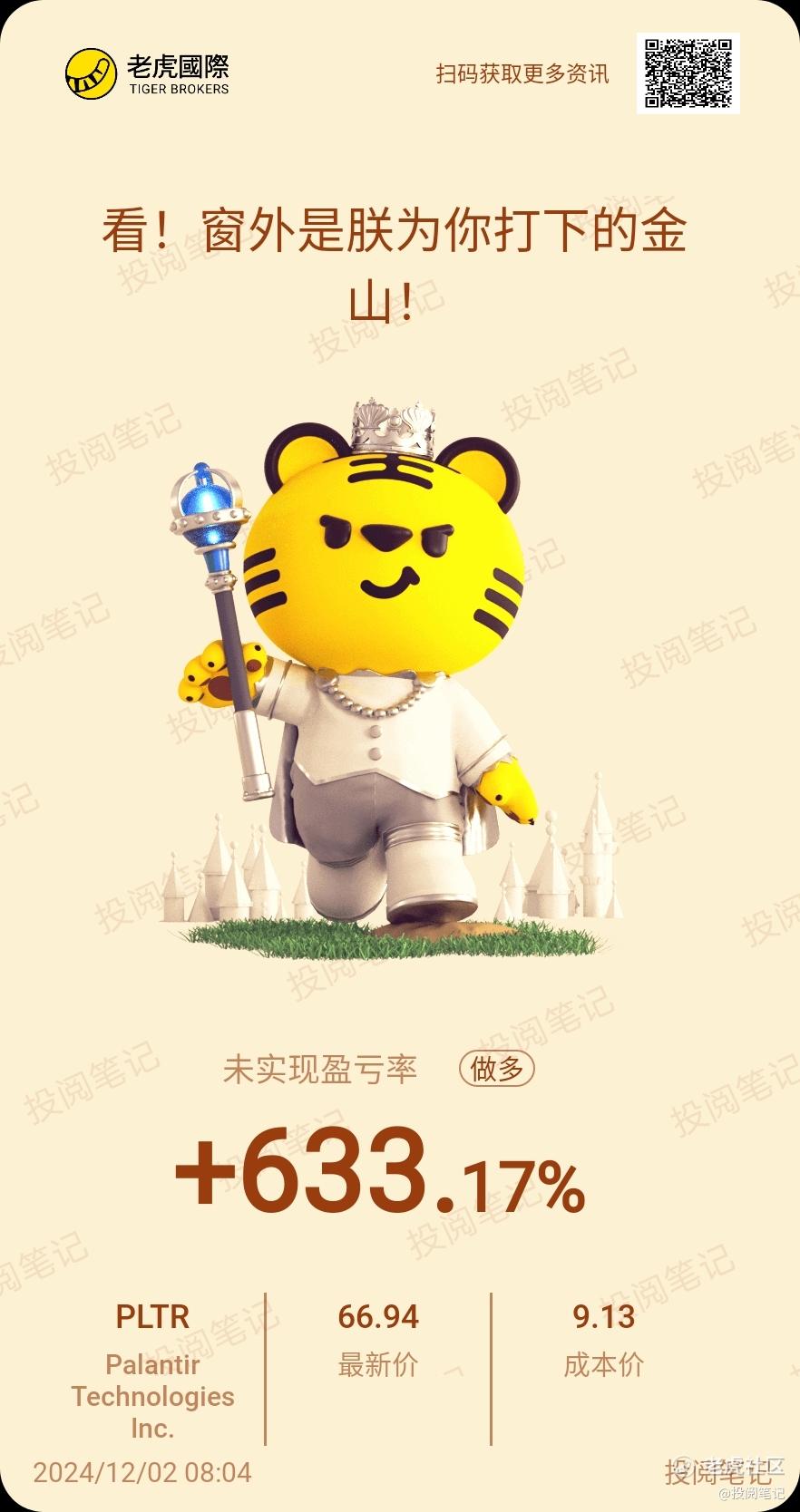 PLTR收益率到了633%,[看涨] 一方面是股价上涨,另一方面是减持了部分股份。