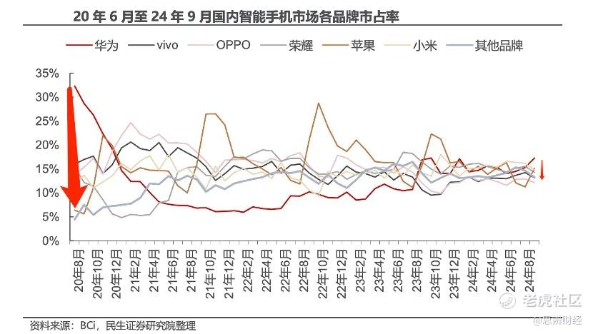 如今的中国手机厂商仍在内卷中厮杀,2020年之前厂商之间市占率仍然有较大差异,但在当前的2024年包括苹果在内的手机厂商,市占率的差异已经非常之小,这意味着厂商要花费更大的力气才能从对手们手中夺回一点市场份额,竞争十分胶着。
