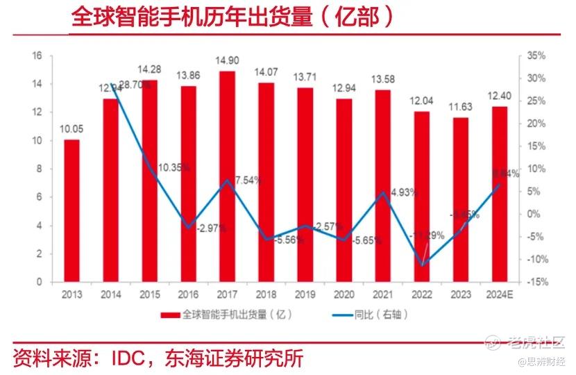如今受AI化以及其他因素影响,2024年全球智能手机出货量较之以往确实有了明显的提升,但仍然未能如愿打造成为新的“换机潮”,2024年IDC预测的全球智能手机出货数据仍然低于2021年之前的水平,行业元气并未完全恢复。