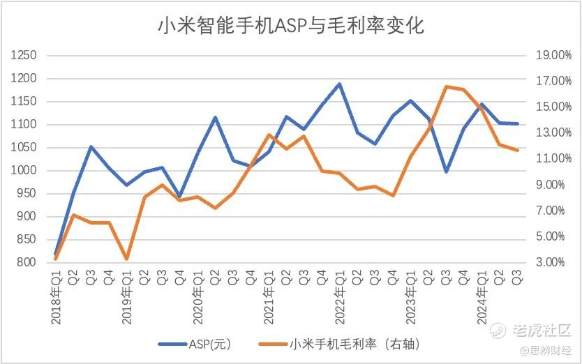 结合前文分析以及对两条折线的再观察,我们就会发现小米在2024年采取了积极的经营策略,简单来说在定价方面更为克制(低价),企业主动承担部分原材料上涨的成本,一切以稳定市占率为前提。