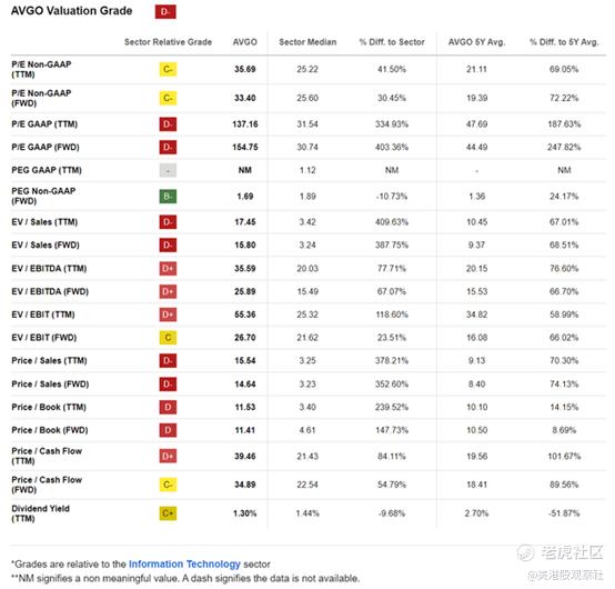 博通相对于其科技行业平均水平并没有定价折扣(“D-”估值等级)。因此,很明显博通预计将继续表现良好,鉴于其“B-”增长等级,突显了市场的高期望。换句话说,未来不太强劲的指引可能会抑制股票的购买情绪,影响其逢低买入的势头。