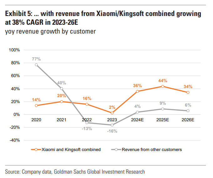 根据该协议,高盛预测小米及金山软件合计给金山云带来的收入到2026年在总收入中的比重将从目前的约20%提升至30%。2023年至2026年,该收入将以38%的复合年增长率在企业内实现高速增长。