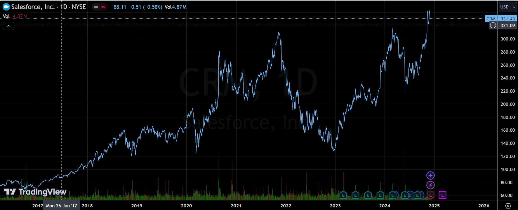 Salesforce Q3盘后新高:为何不及预期也能大涨?