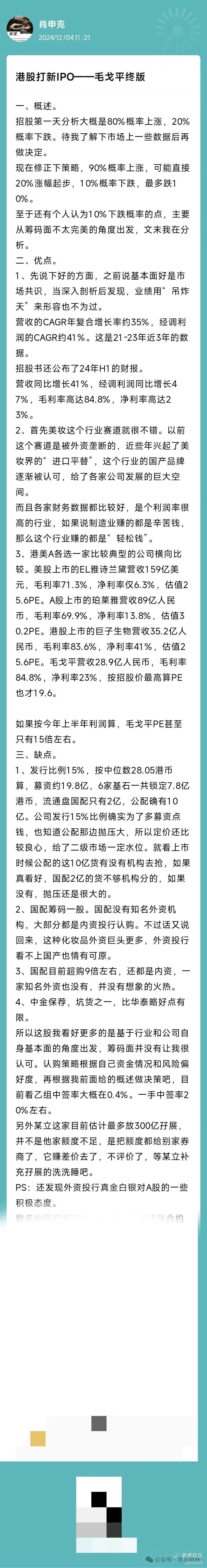 港股打新IPO——毛戈平终版策略