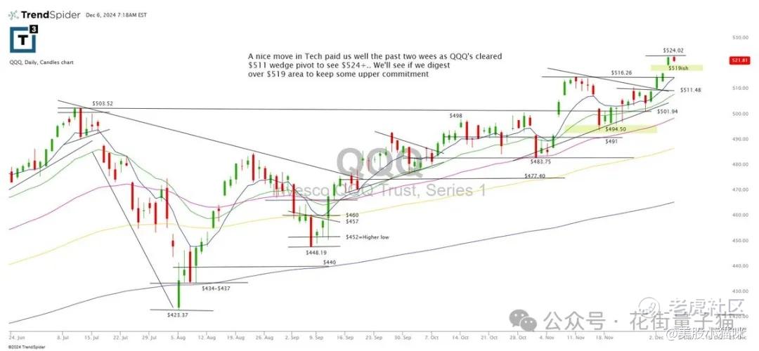 如果QQQ能站稳519美元以上,将保持市场上行势头。