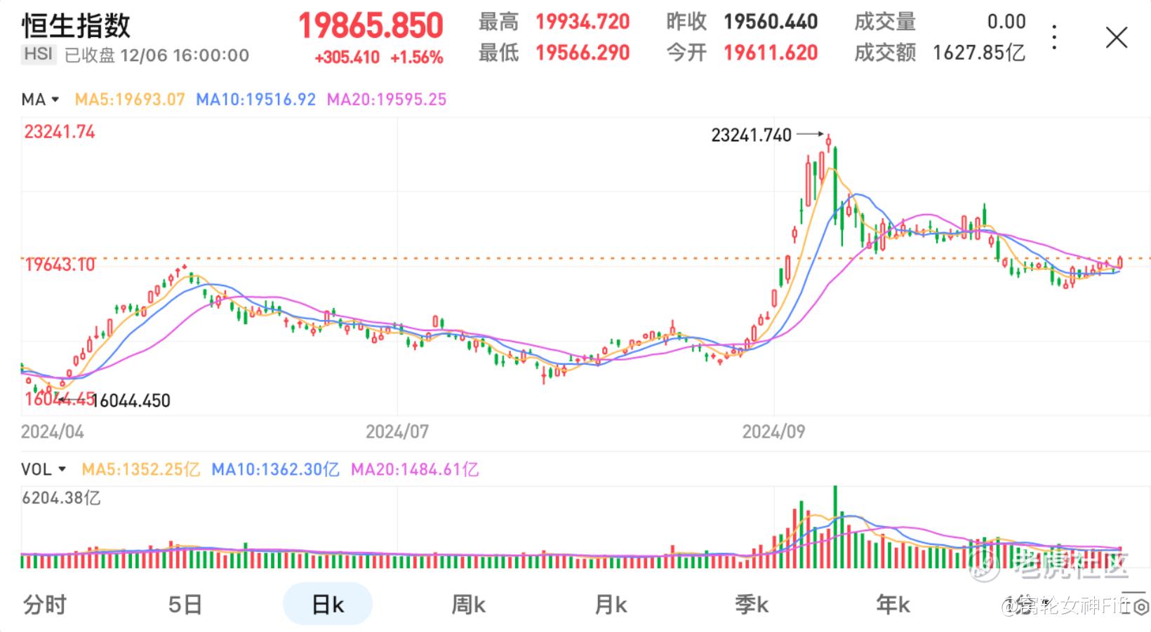 不过,港股被认为处于高性价比区间,未来国内政策的发力可能推动基本面改善,港股 $恒生指数(HSI)$ 有较大上行空间。