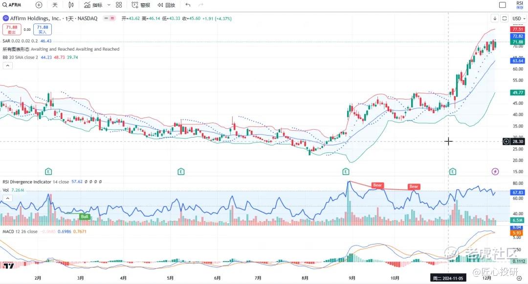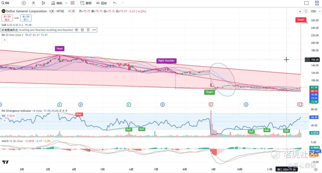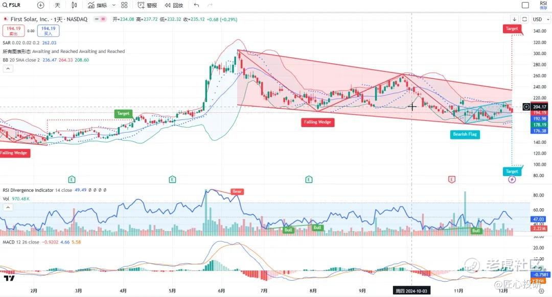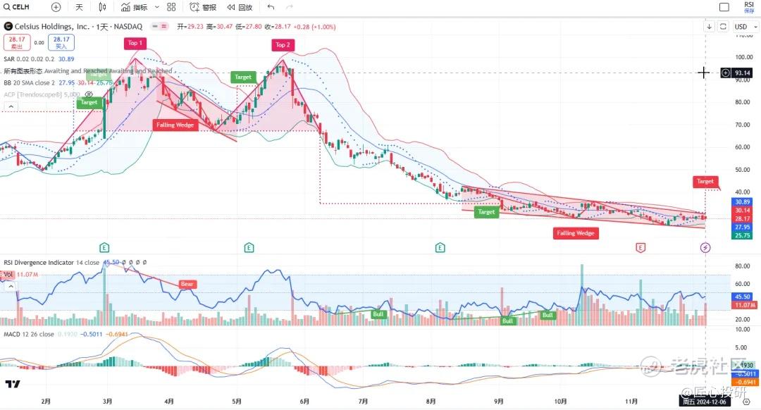 热门美股K线技术形态三2024年12月8日