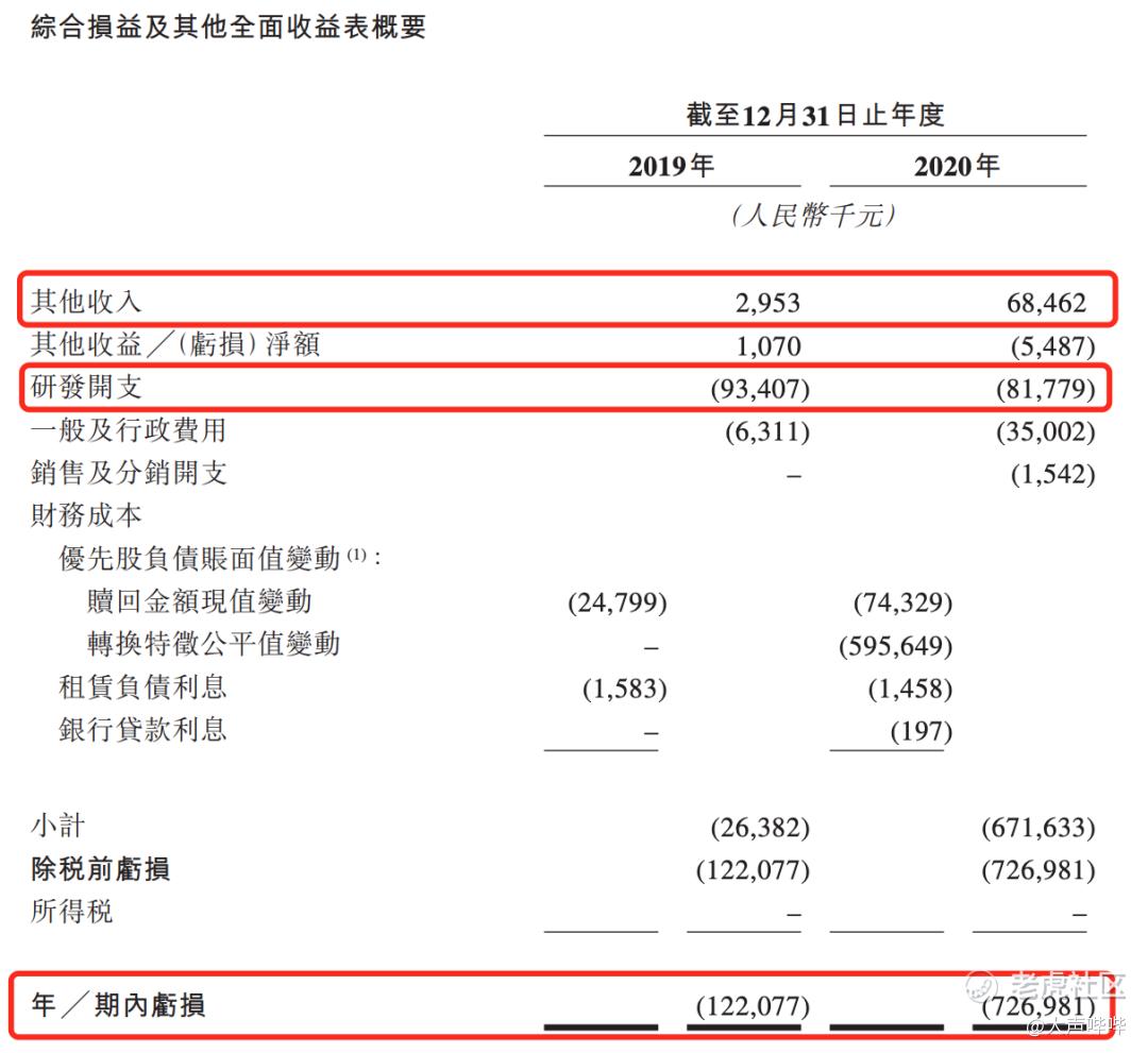非医药行业的我公司行业方面看不懂,也不敢瞎评论,我相信有很多大V也不懂就是硬抄看看就行了,财务方面的话,公司尚未盈利并产生经营亏损。年内亏损由2019年的人民币1.22亿元扩大至2020年的人民币7.27亿元。2019年至2020年公司研发投入达0.93亿和0.82亿,这个报表很有意思,其他收入增长这么多是卖地了吗?还没开发出一个盈利的产品研发费用就降下来了?一年亏了这么多都去会所玩了吗?你们上市的目的是不是就是来割韭菜的?
