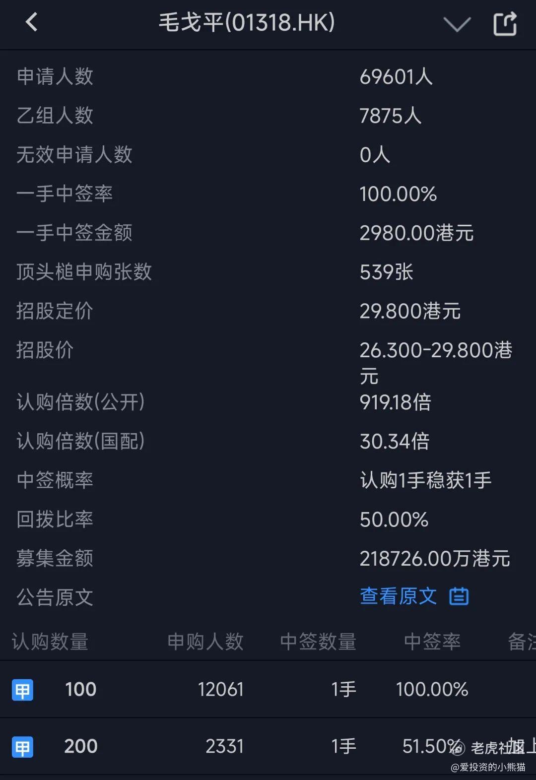 毛戈平国配30.34倍,打新人的盛宴!涨到天上去了,冻资王果然不一般!——(01318.HK)新股配售情况