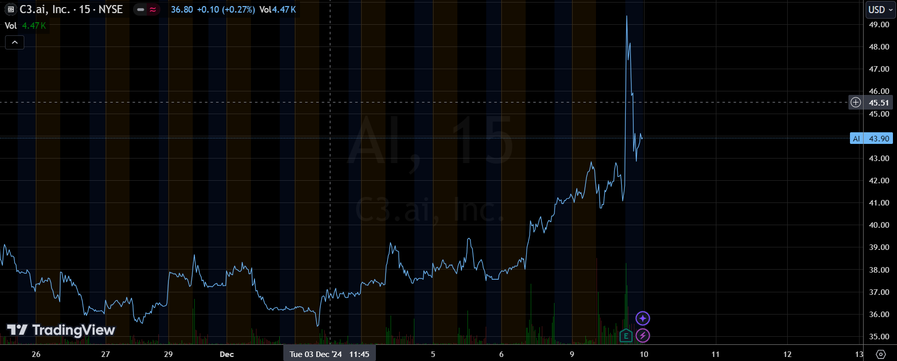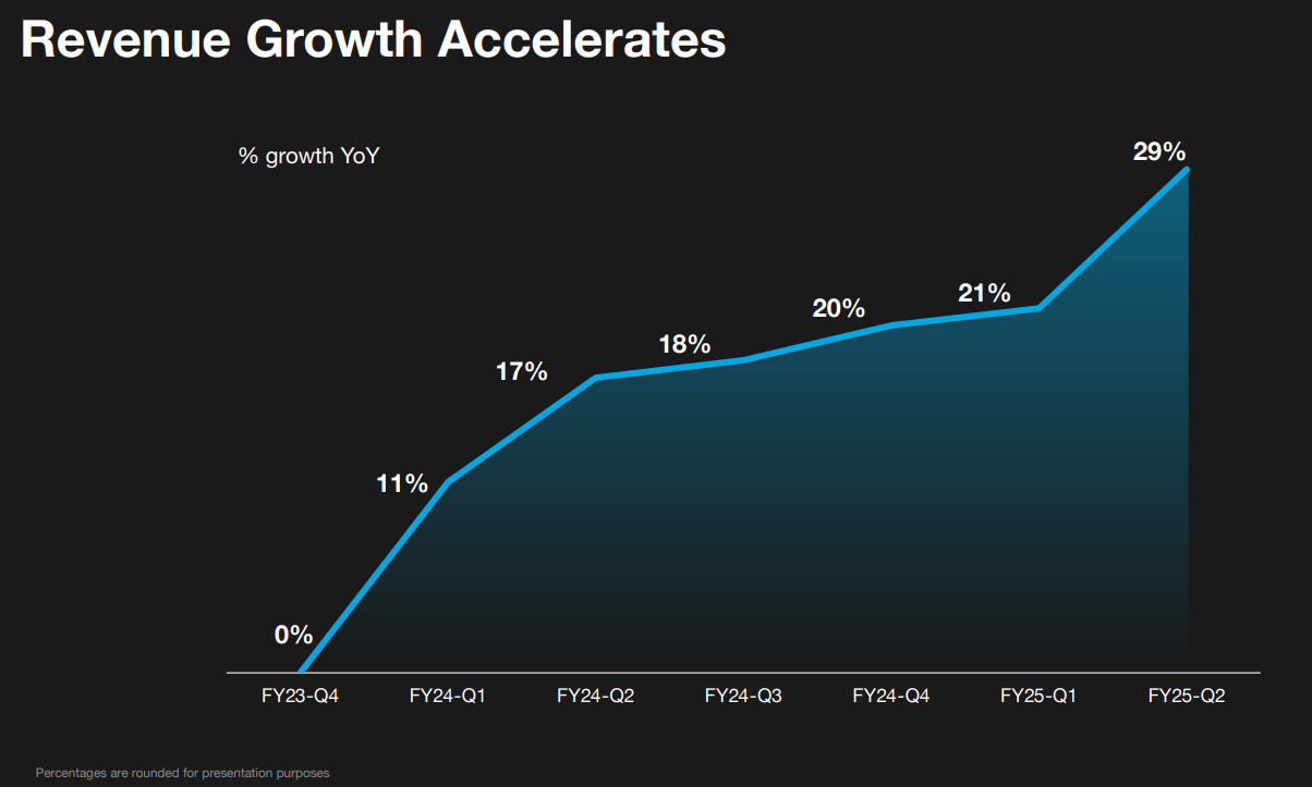 全市场获得最香代码的“C3.ai” $C3.ai, Inc.(AI)$ 在周一盘后公布2025财年Q2业绩,并在盘后交易中一度大涨超20%,Q2业绩超预期并上调了全年业绩指引,也是得益于人工智能相关支出的持续强劲。