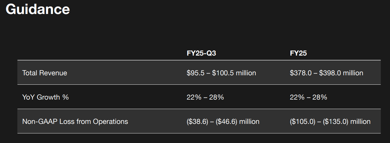 该公司目前预计 2025 财年收入在 3.78 亿美元至 3.98 亿美元之间,高于此前 3.7 亿美元至 3.95 亿美元的区间。分析师此前预计该公司全年收入为 3.826 亿美元。