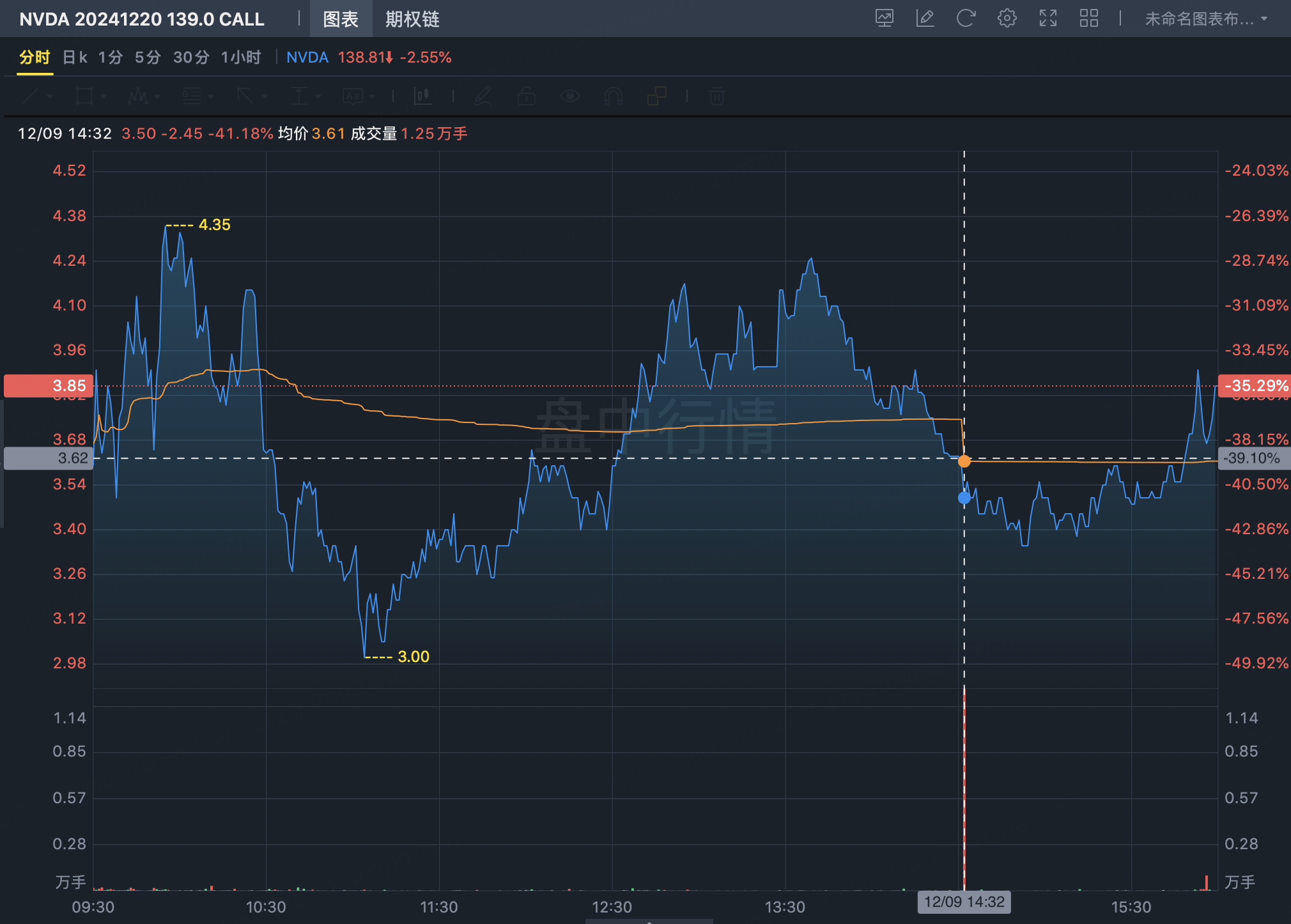 12月20日到期139看涨期权 $NVDA 20241220 139.0 CALL$ 出现卖出大单,十分看跌。