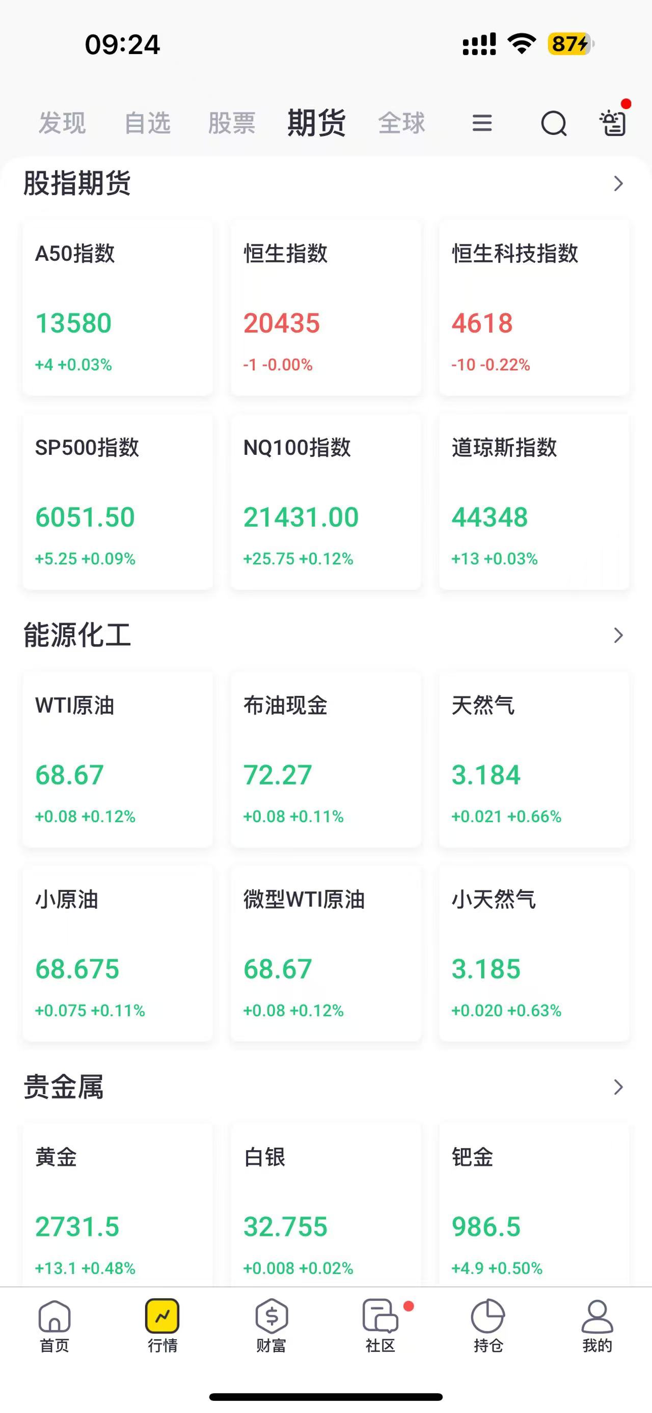 【黄金】国际贵金属期货普遍收涨,COMEX黄金期货涨1.33%报2721.5美元/盎司,COMEX白银期货涨0.12%报32.65美元/盎司。