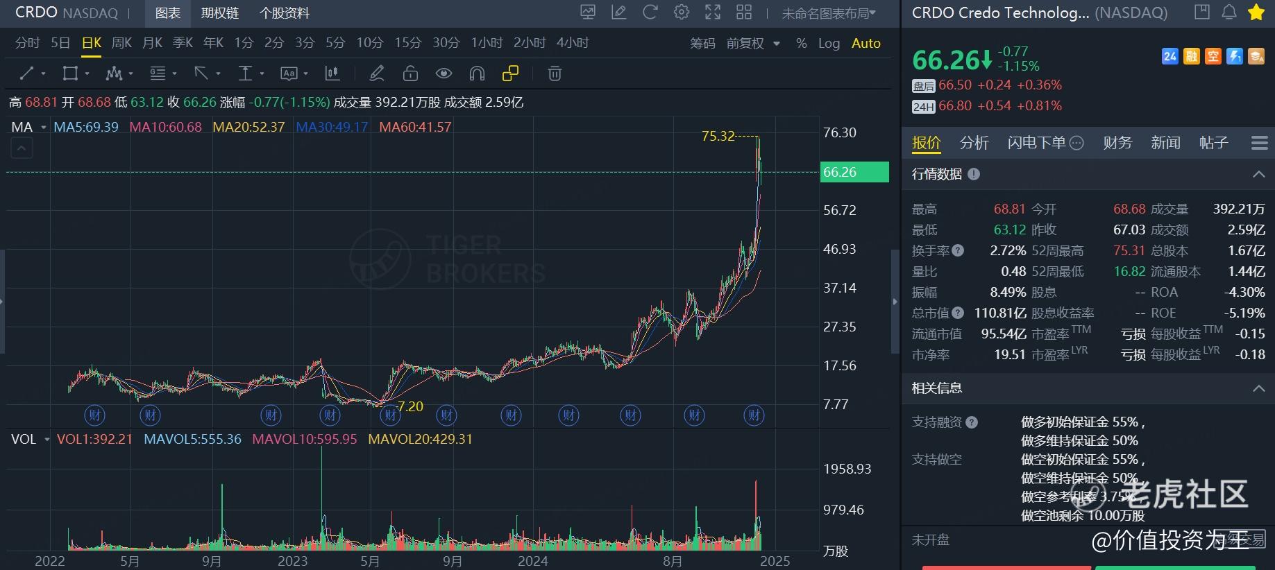 从财务数据上看,Credo其实在今年一季度的营收就已经爆发式增长了,对于聪明的投资者来说,那时是介入Credo的最佳时机,现在,或许到了鱼尾阶段。 $英伟达(NVDA)$