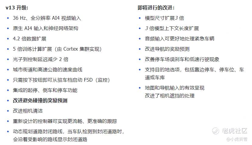 此外近期, $特斯拉(TSLA)$ 也发布了自己的自动驾驶FSD的v13。相比之前的v12.5,效果更加拟人化,能实现点对点的自动驾驶。模型层面来看,有更庞大的数据、更清晰的输入、更复杂的结构,可以期待智能驾驶也开始走Scaling Law。总的来看,目前AI并未熄火,各大玩家目前正在如火如荼的进行科技迭代,也无需担心技术进步见顶。