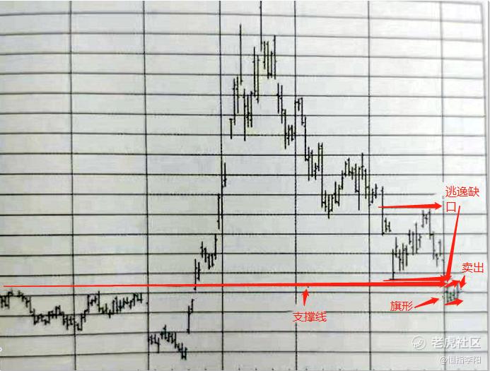 2.旗形形成在盘整区和长期支撑线的下方,预示着可能会持续下降