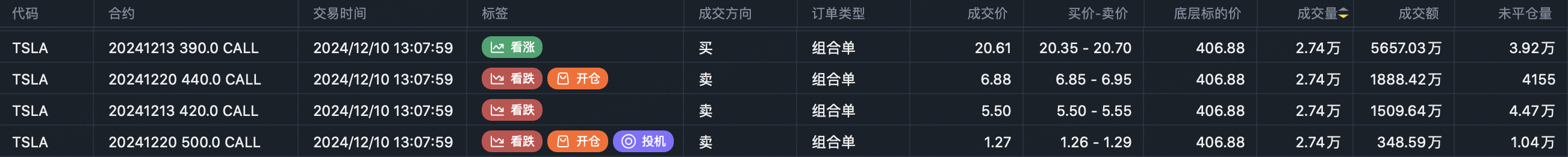 卖 $TSLA 20241213 440.0 CALL$ ,买 $TSLA 20241213 480.0 CALL$
