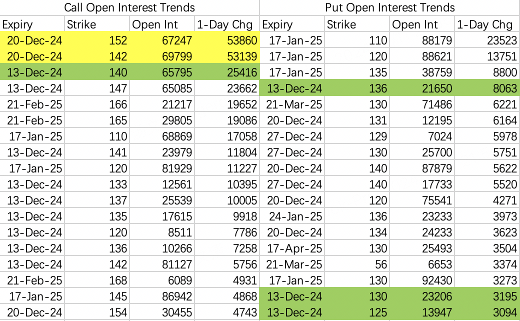 周二回调虚惊一场,因看跌期权周一开仓量飙升,英伟达被反向逼空,迫使做sell put137跟138的多头割肉逃跑。