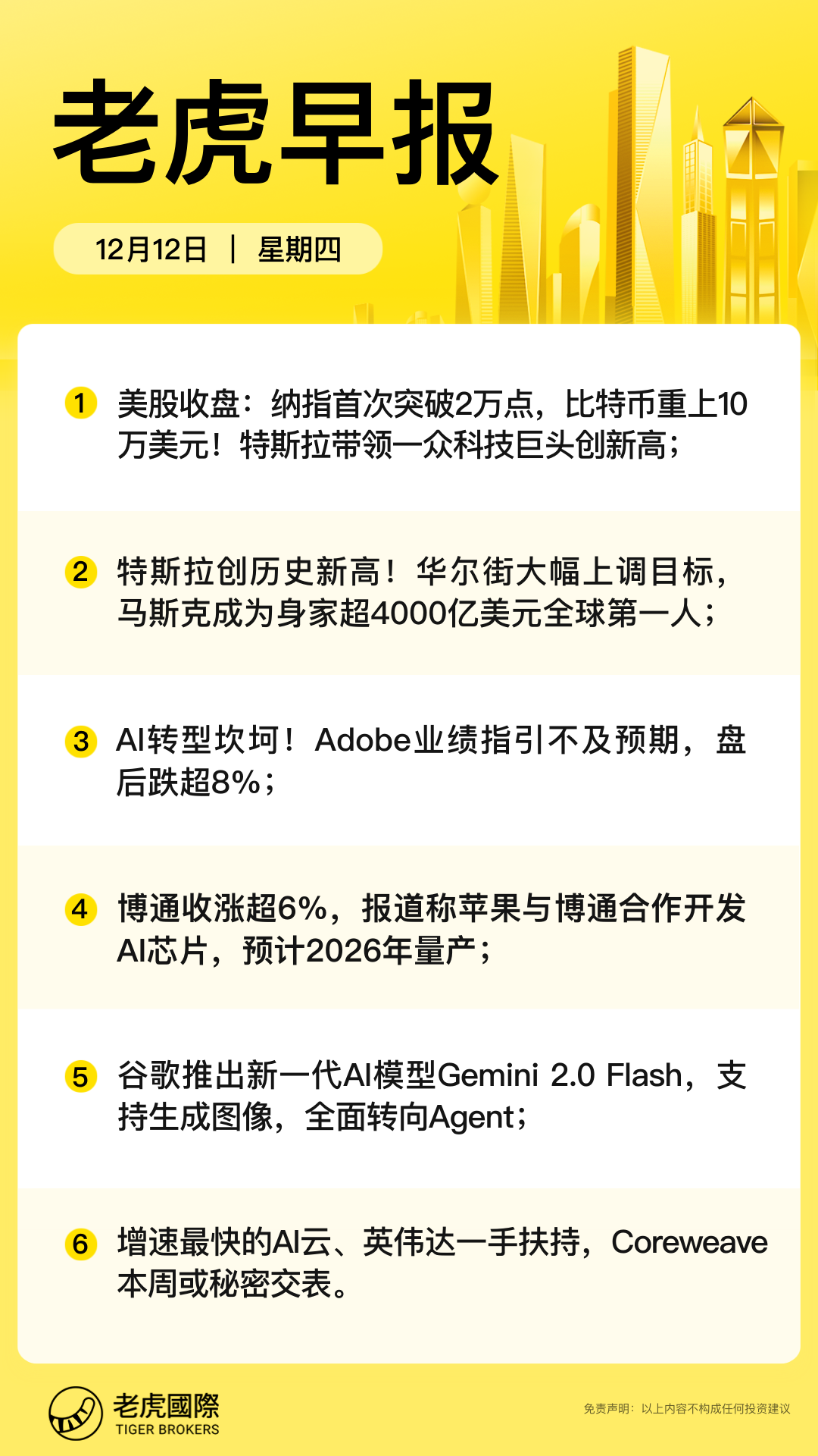 🚀【12月12日】美股纳指首破2万点 大型科技股普涨,你买点啥?