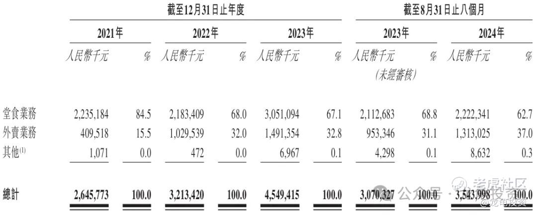 小菜园于2013年由汪先生在安徽铜陵创立,经过10多年的发展,已成为中国知名大众便民中式餐饮市场直营连锁餐厅。主要营收包含堂食业务和外卖业务,堂食2023年营收30.51亿人民币,占比67.1%;外卖2023年营收14.91亿人民币,占比32.8%;