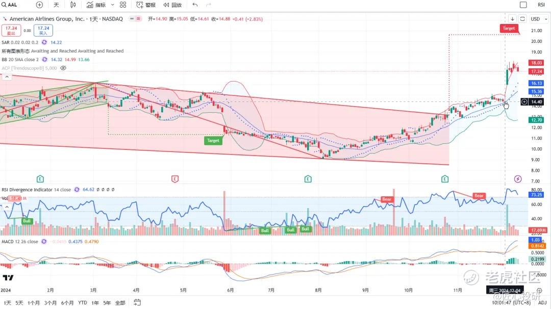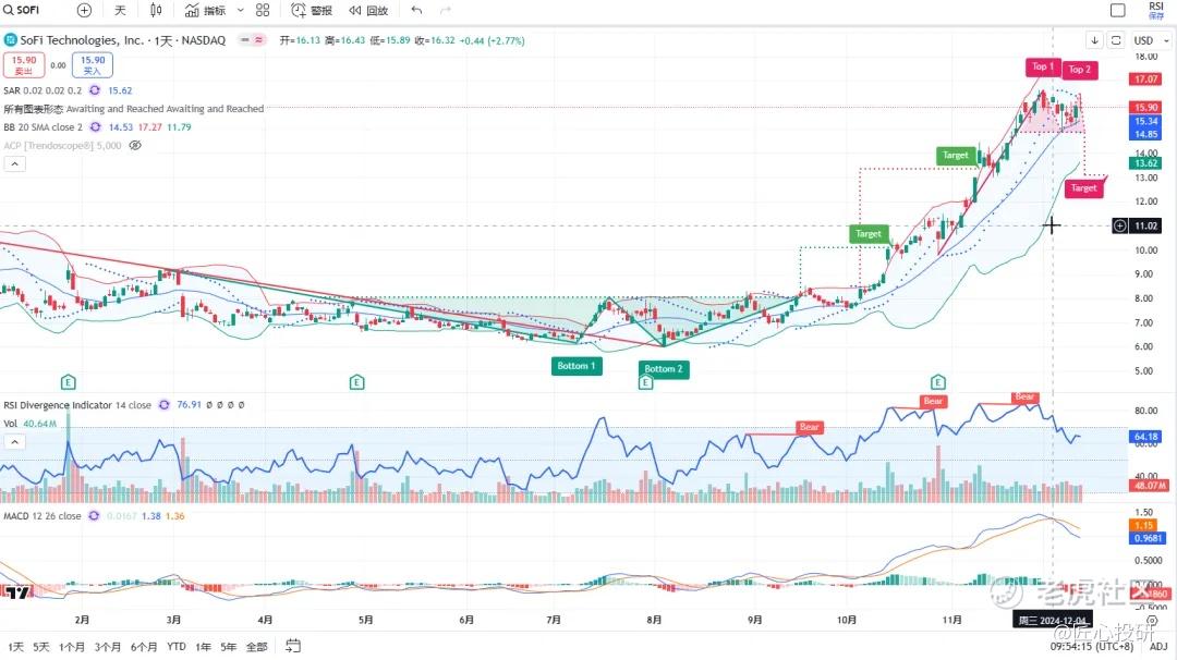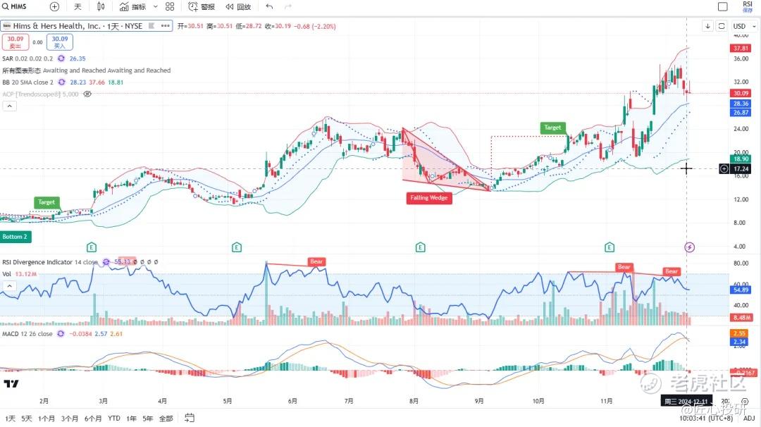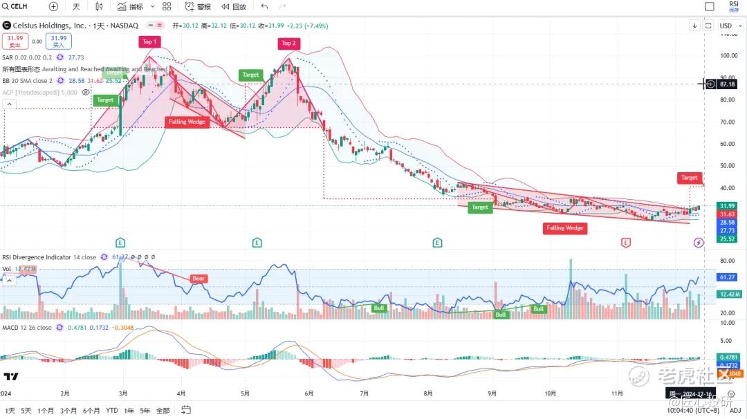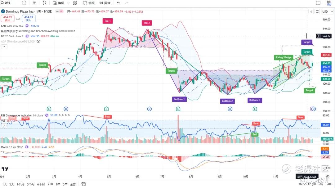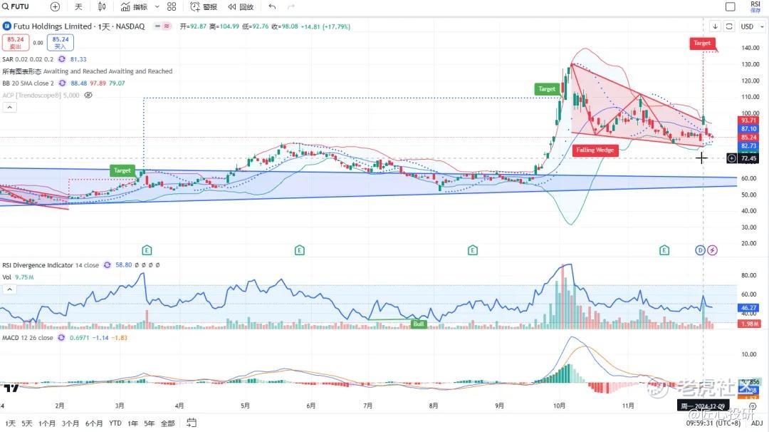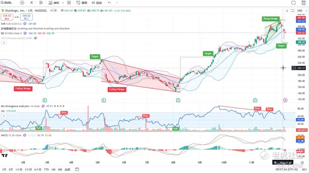 热门美股K线技术形态三2024年12月13日