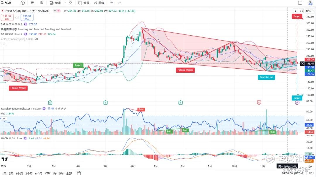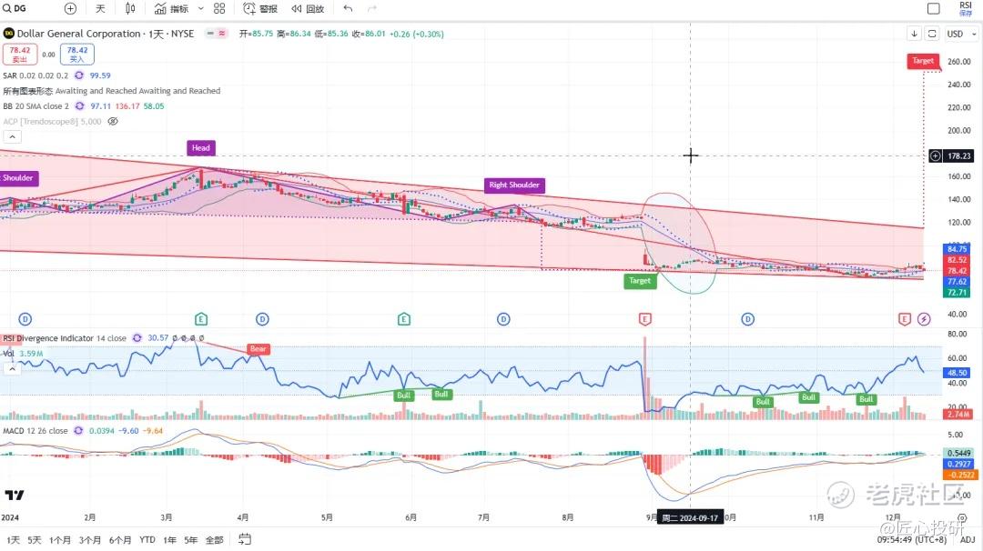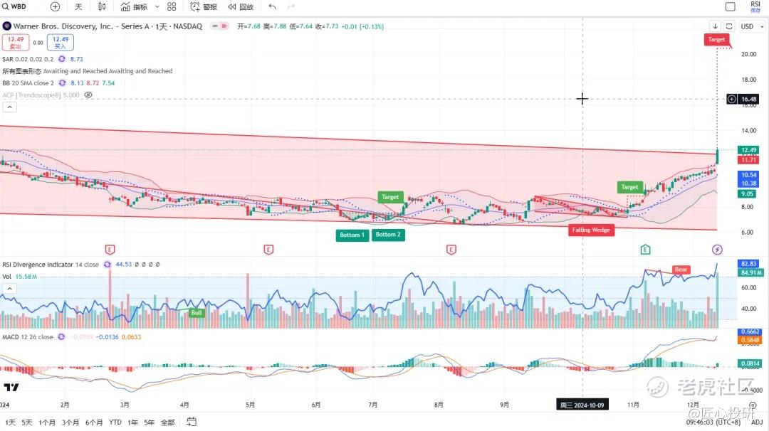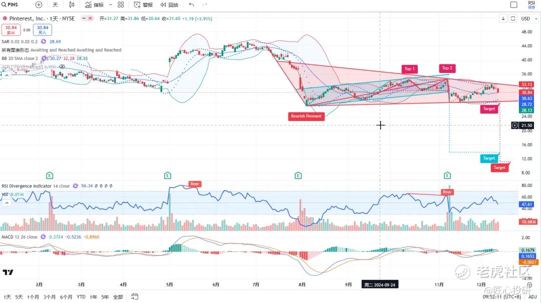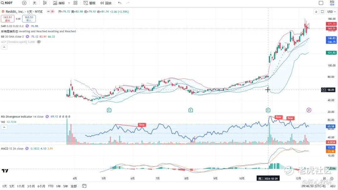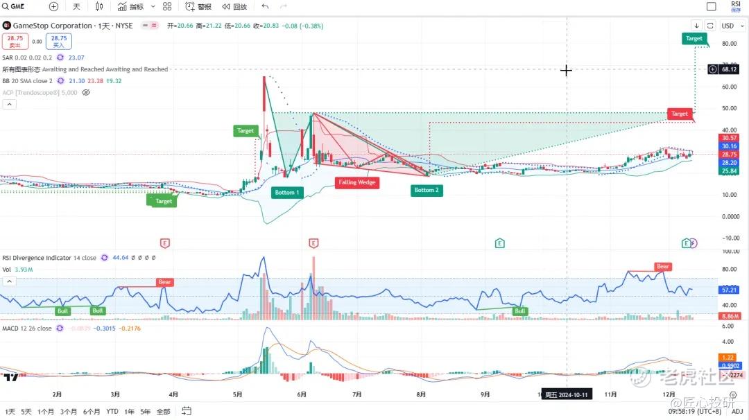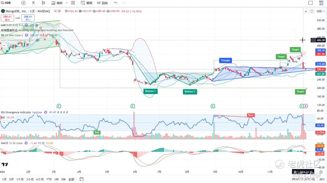热门美股K线技术形态三2024年12月13日