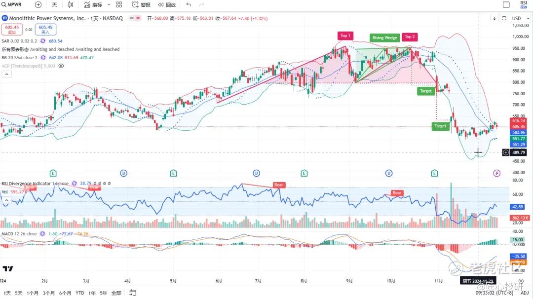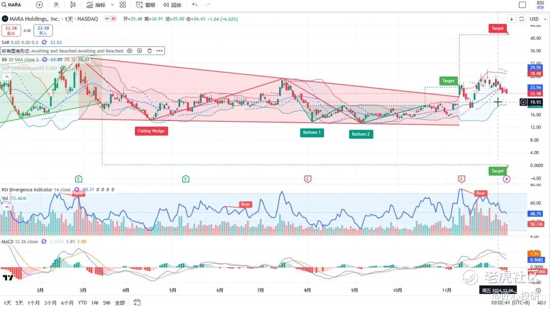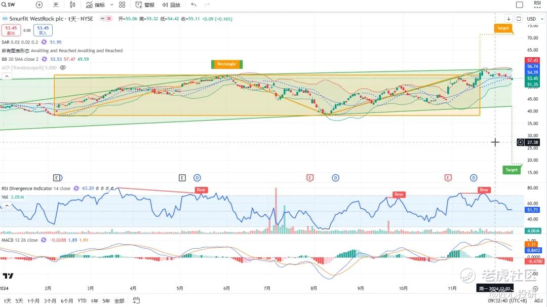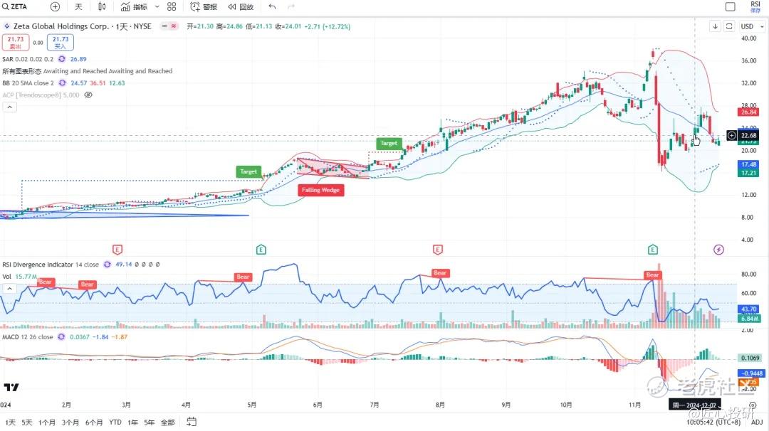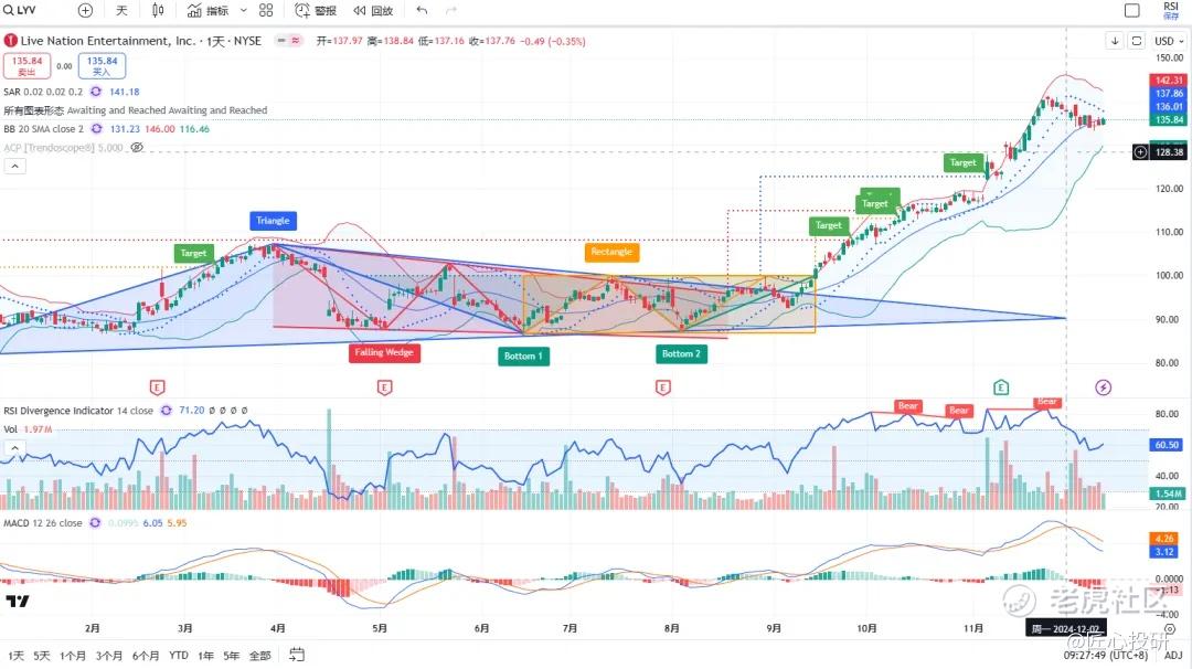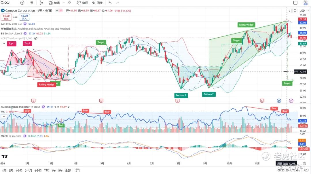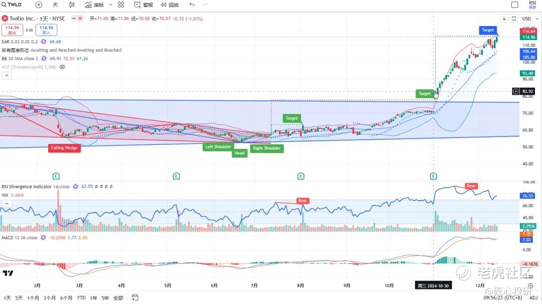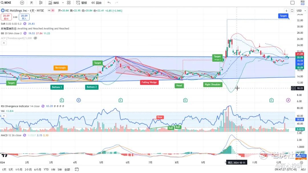 热门美股K线技术形态三2024年12月13日