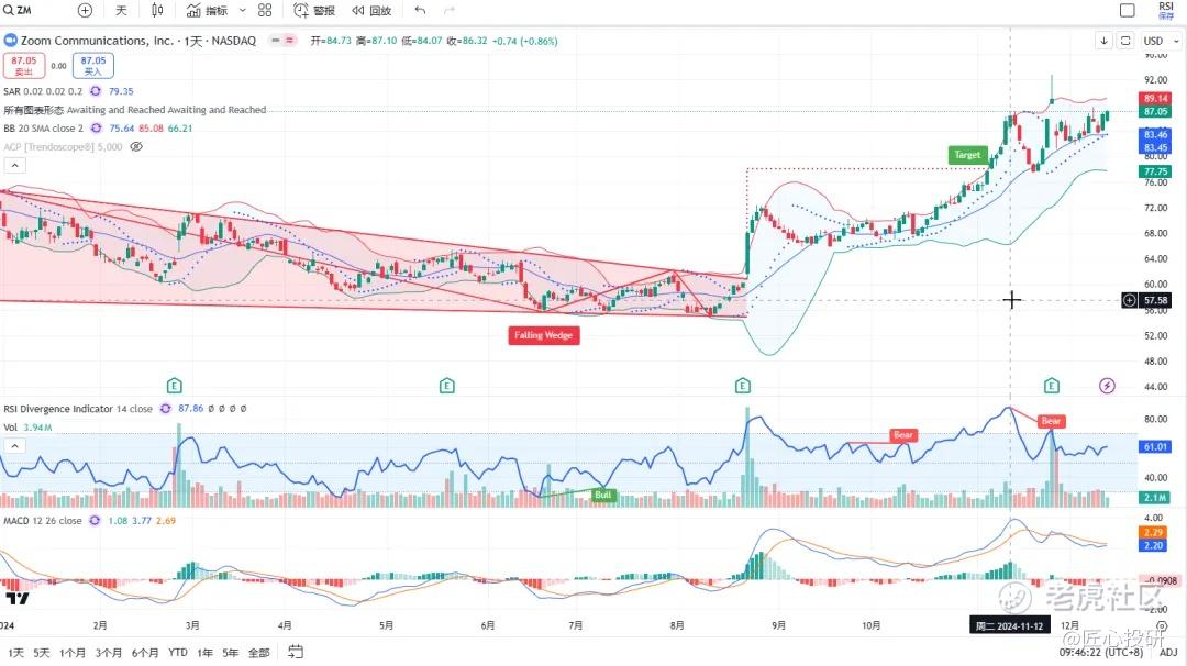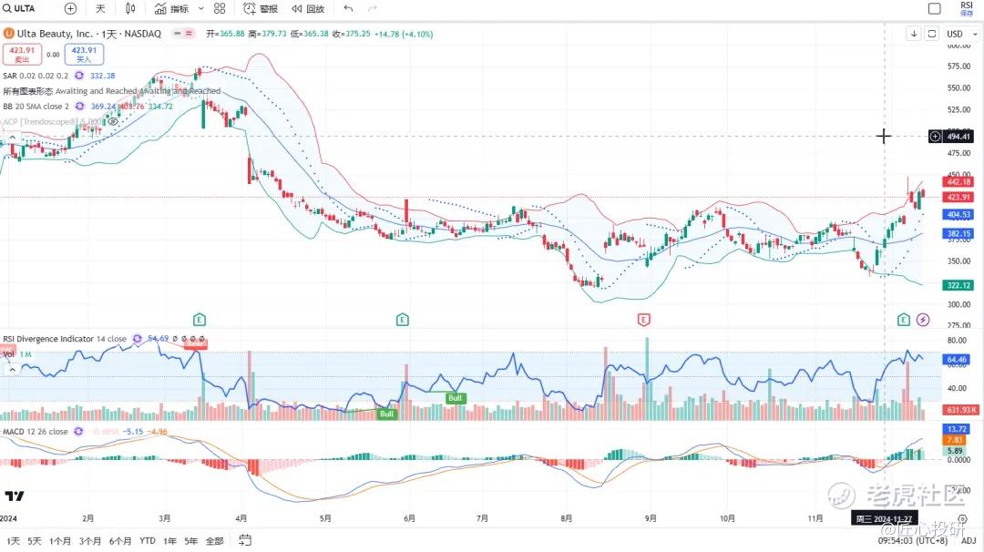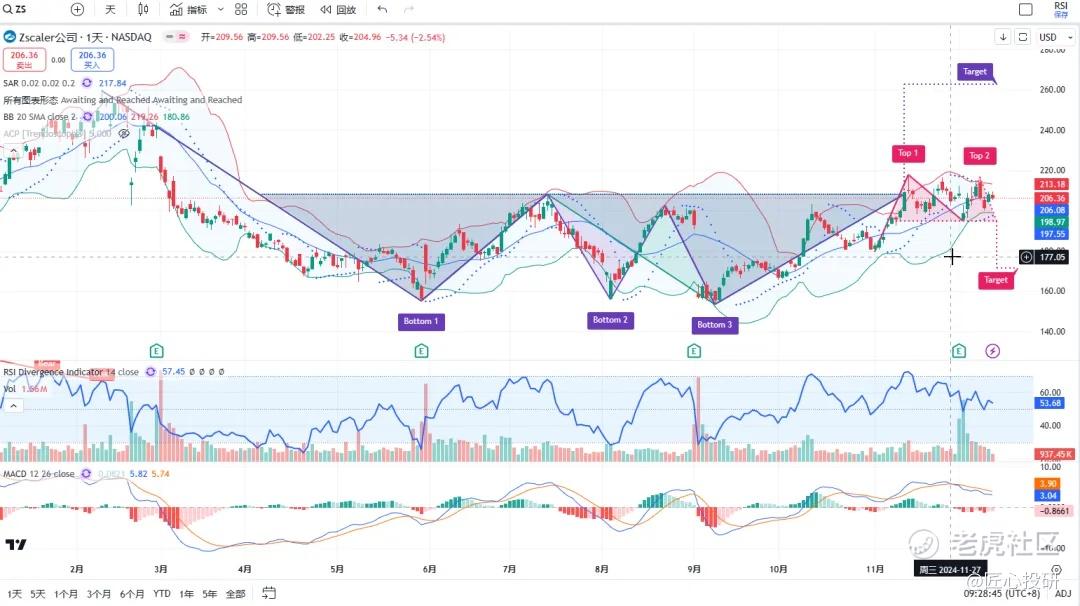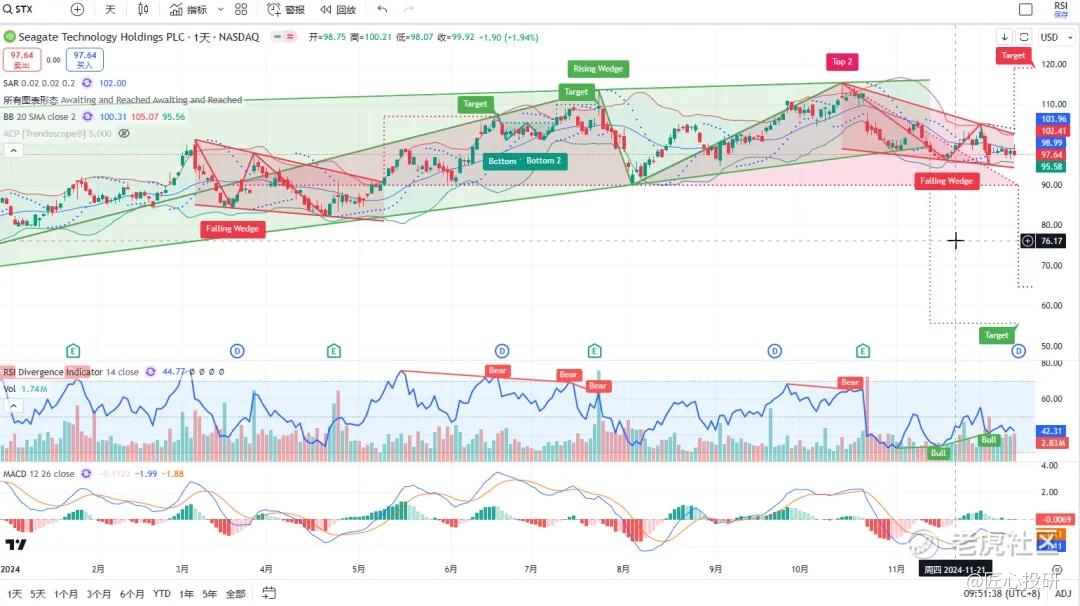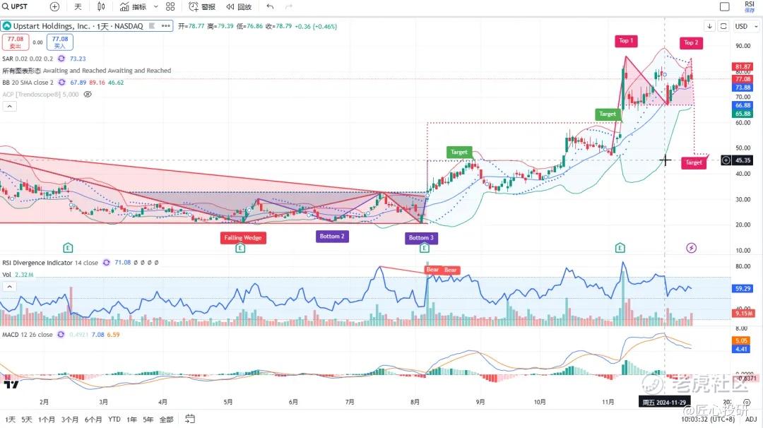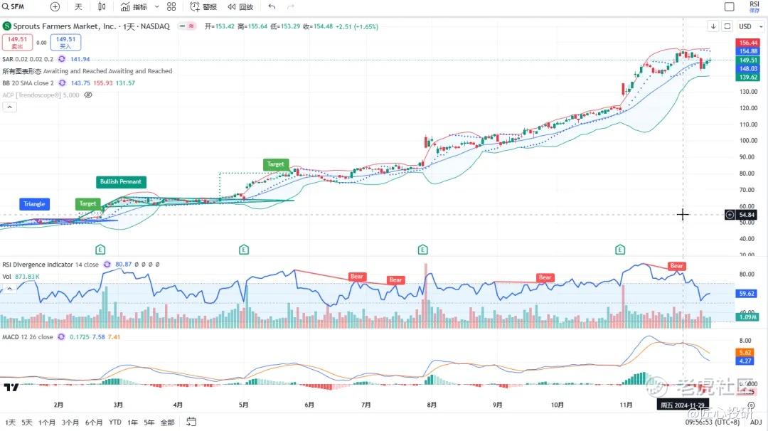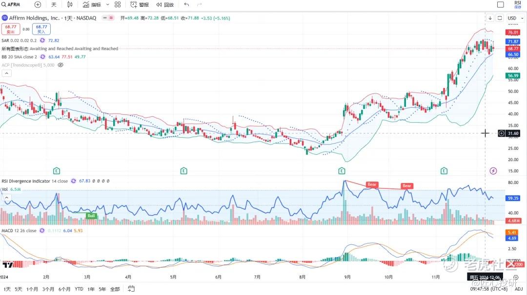 热门美股K线技术形态三2024年12月13日